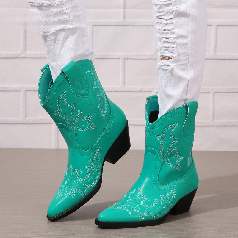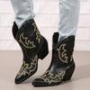 Plus Size 46 Women Embroidered Western Cowboy Boots Stylish and Comfortable Work Boots Block Heel Thick Sole Women Western Shoes
