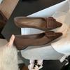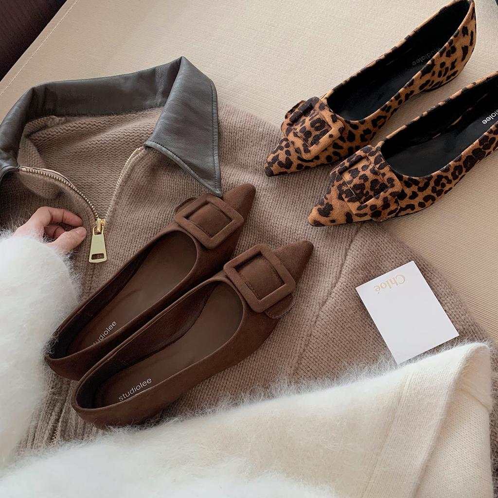 Sheepskin~ Grape Mom same temperament pointed leather shoes square buckle versatile light mouth leopard print flat sole shoes women