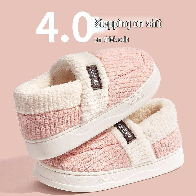 Women's Winter 2025 Plush Cotton Slippers: Closed Heel, Thick Soft Sole, Warm Postpartum Shoes, Step-on Comfort for Him & Her