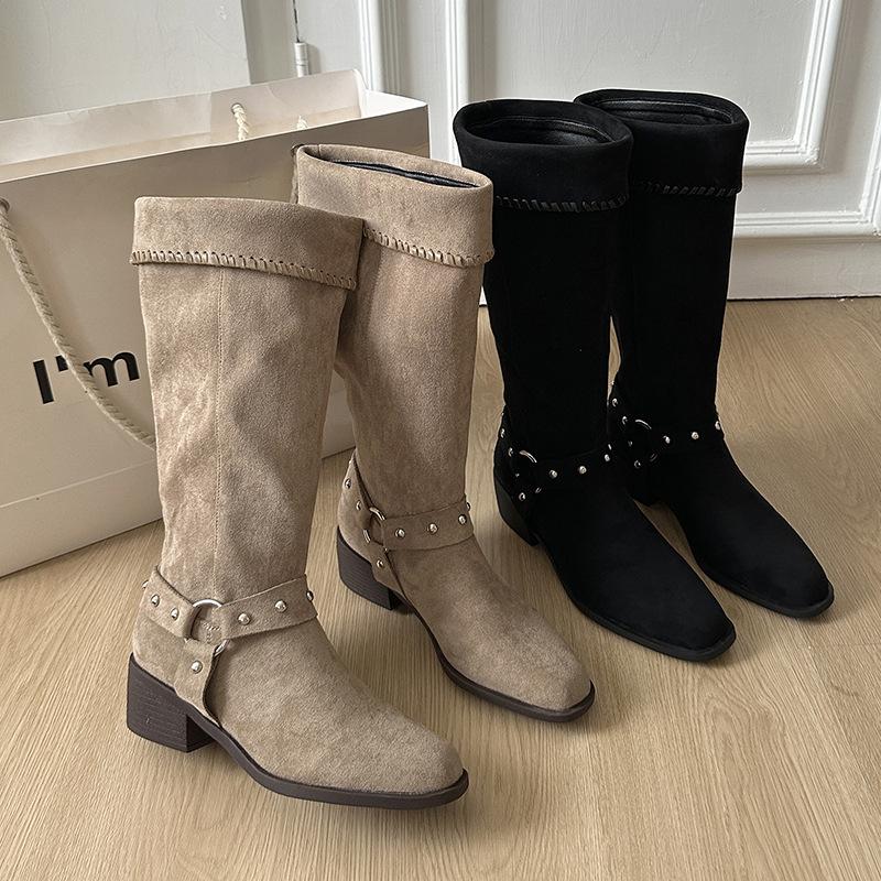 European and American style retro versatile high-heeled knight boots women's boots 2025 autumn and winter new square head thick heel but knee boots