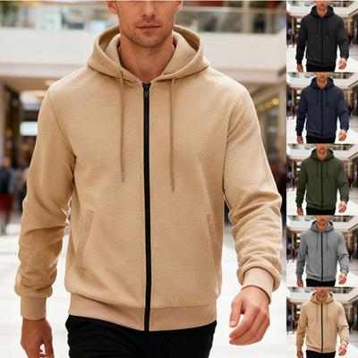 Pánské mikiny s kapucí a kapsami, s dlouhým rukávem, na zip, se stahovací šňůrkou, bavlněný kabát pro pohodlí