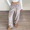 Dámské pyžamové kalhoty, Plyšové pyžamové kalhoty, Měkké pyžamové kalhoty s elastickým pasem, Kalhoty s hvězdami a 2 kapsami