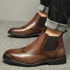Large size Brock engraved trend British Korean version winter new men's retro leather shoes high top leather boots men