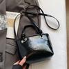 2025 new Korean simple oil wax leather portable bucket bag fashionable versatile solid color foreign style commuter messenger women's bag