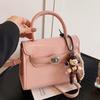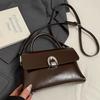 2025 new ins simple oil wax leather solid color portable small square bag femininity versatile commuter style messenger bag bag
