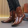 Martin boots men's high-top shoes pointed British short boots autumn and winter mid-tube heightening zipper casual leather boots