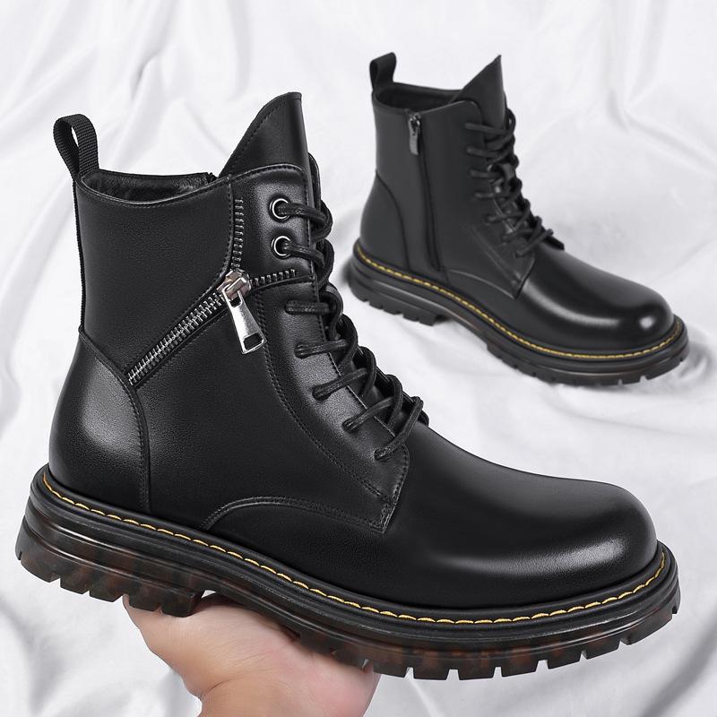 Martin boots men's winter velvet thermal leather boots men's leather high-top leather shoes locomotive boots zipper cotton boots men's