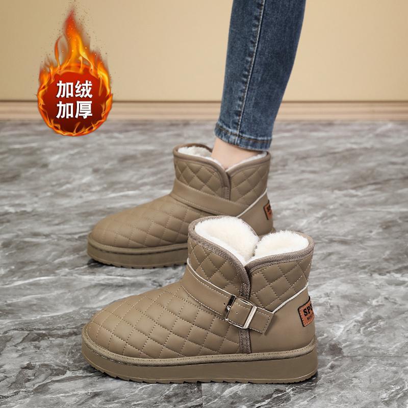 Couple snow boots women's winter 2025 new velvet thickened bread shoes leather surface waterproof and warm outside wear snow cotton