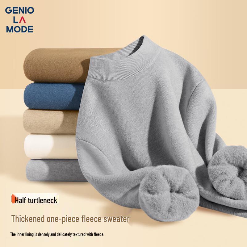 GENIOLAMODE Men's Fleece-Lined Mock Neck Knit Sweater