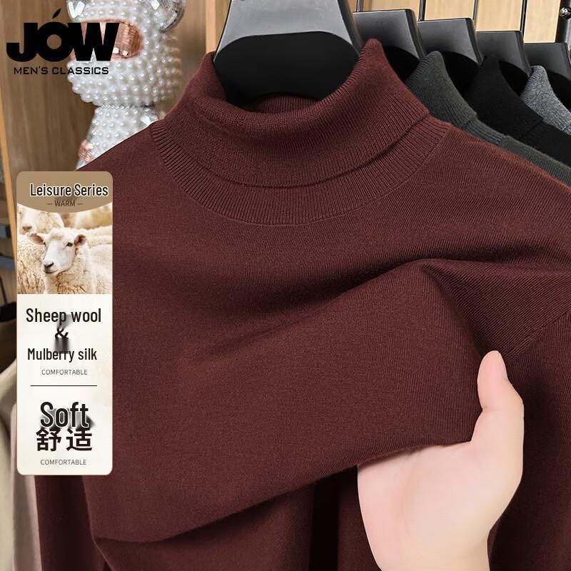 JOW Men's Merino Wool & Silk Blend Turtleneck Sweater