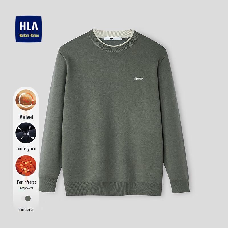 HLA Men's Fleece-Lined Core-Spun Round Neck Slim Sweater