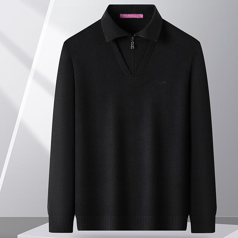 FAPAI Men's Faux Two-Piece Stand-Collar Wool Blend Sweater