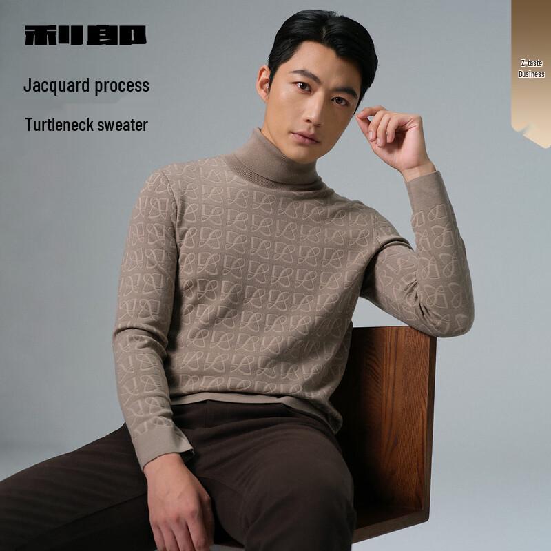 Lilanz Men's Slim Fit Jacquard Turtleneck Wool Sweater