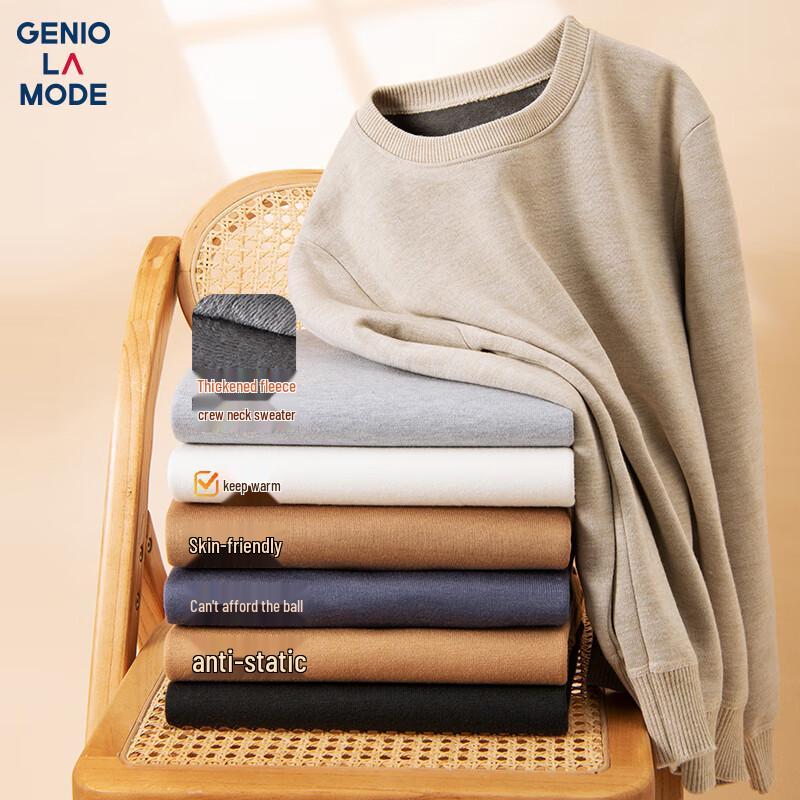 GENIOLAMODE Men's Winter Fleece Lined Round Neck Knit Sweater