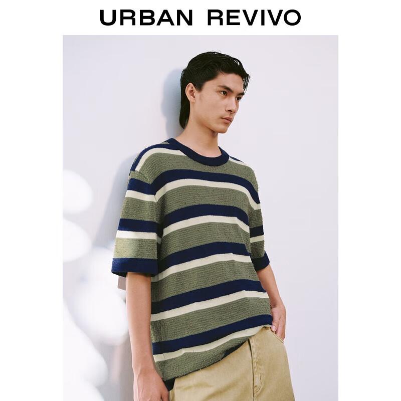 UR2025 Men's Summer Retro Colorblock Stripe Short Sleeve Knit Shirt