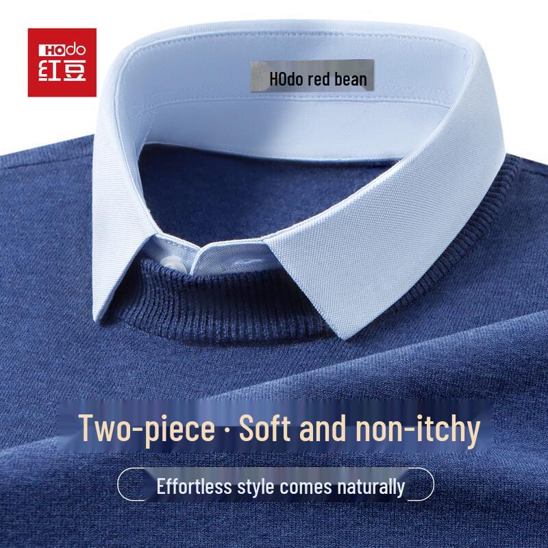 Hodo Men's Thickened Faux Two-Piece Knit Sweater
