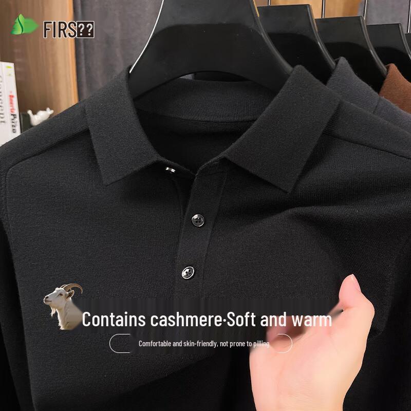 Shanshan Men's Cashmere Blend Knit Pullover with Turn-down Collar