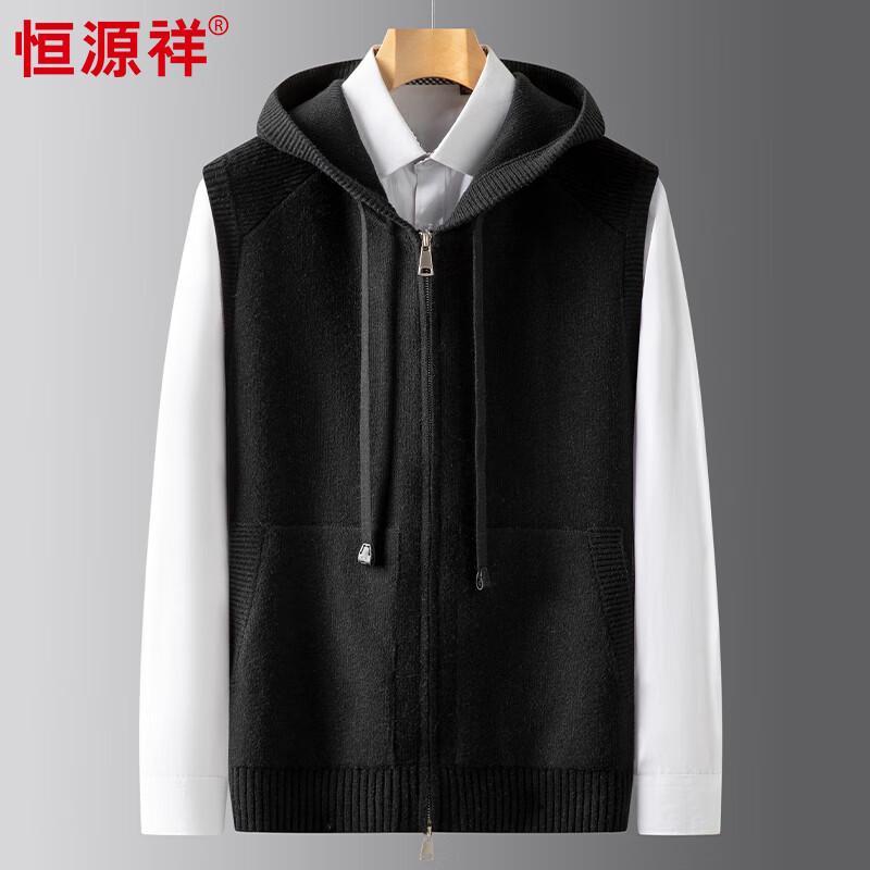 Hengyuanxiang Men's Hooded Cashmere Blend Knit Cardigan Vest