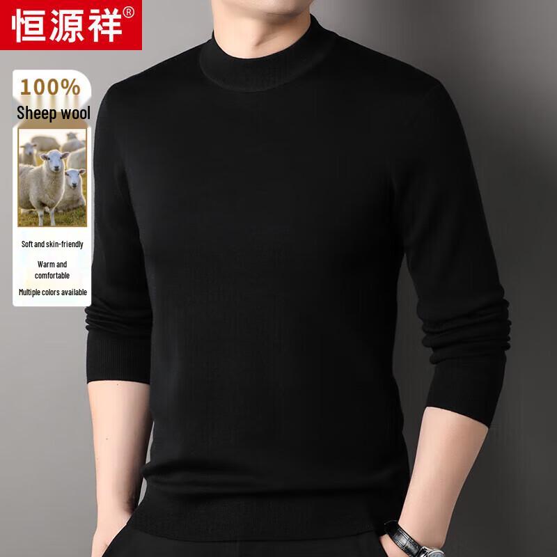 Hengyuanxiang Men's Pure Wool Solid Half Turtleneck Sweater 87001