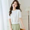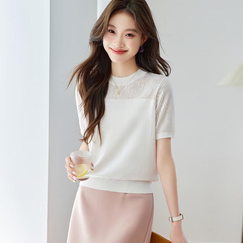 Srcr Women's Silk Blend Lace Knit Short Sleeve Top