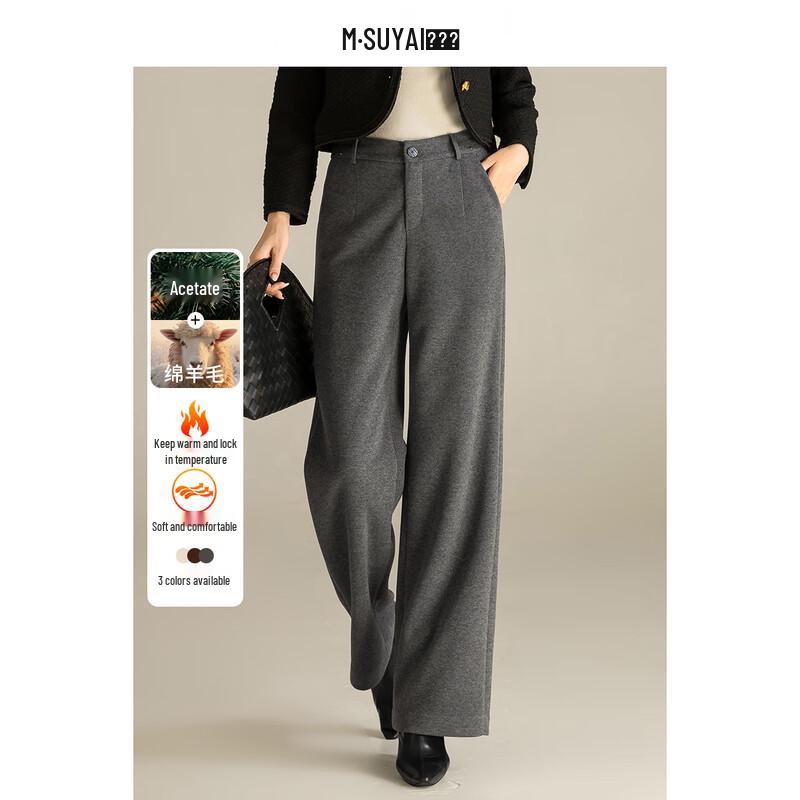 Women's High-Waisted Acetate Wool Blend Thickened Straight Leg Trousers