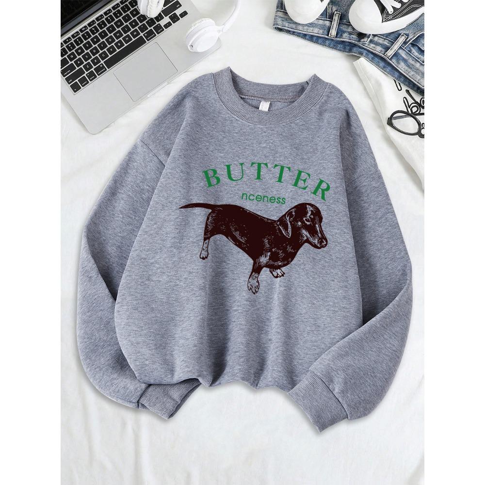 Roztomilé mikiny s potiskem jezevčíka Dámské Zimní Teplé Mikiny Pohodlný Volný Pulovr Ležérní Kulatý Výstřih Dámské Oblečení