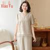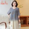 Middle-Aged Women's Summer V-Neck Short-Sleeve Blouse