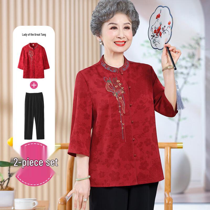 Yuzhaolin Women's Summer Embroidered Shirt Set