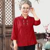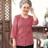 Elderly Women's Embroidered Seven-Quarter Sleeve Summer Shirt