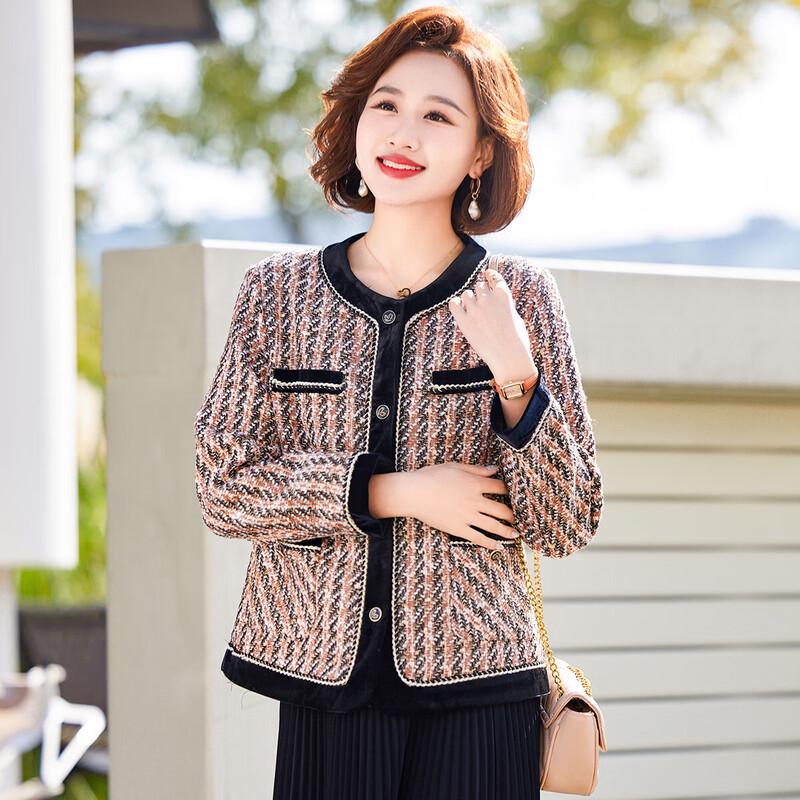 Mid-Aged Women's Casual Plaid Knit Jacket