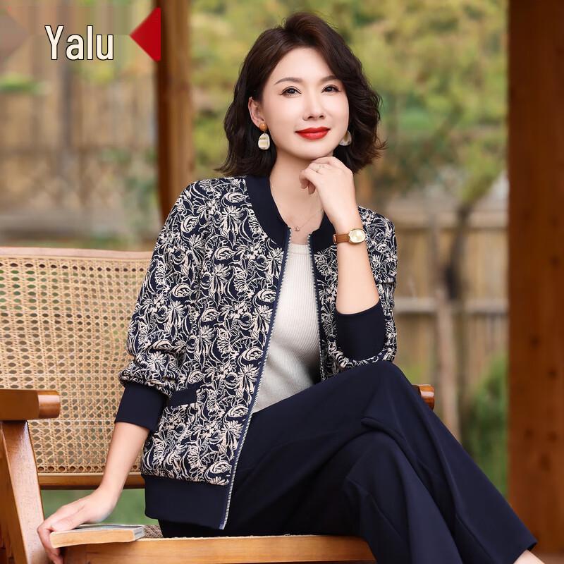 Yalu Women's Middle-Aged Spring/Autumn Casual Baseball Jacket Sportswear Set