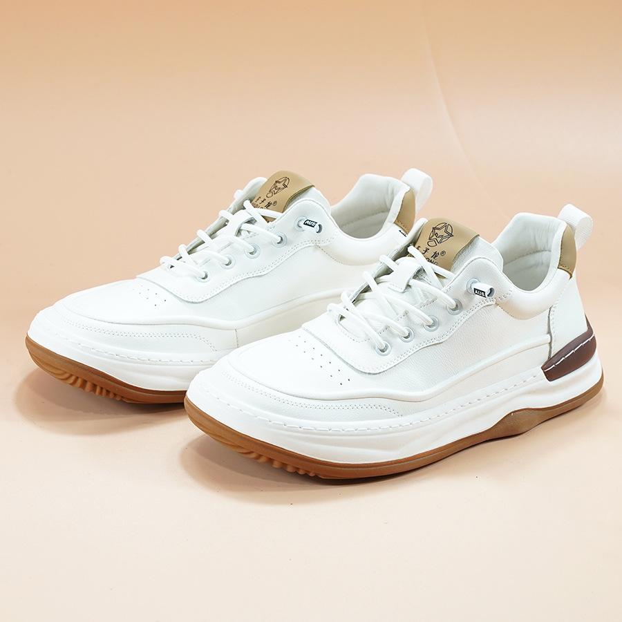 Leather men's shoes new autumn versatile trend crooked head white shoes men's thick-soled breathable leather shoes men's casual board shoes