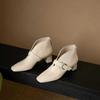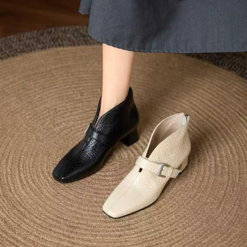 Small square head short boots women's thick heel 2025 autumn and winter new British style soft leather boots versatile retro high heel thin boots