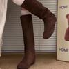 Huge good-looking huge versatile inner heightening suede pile high boots women's 2025 autumn and winter retro flat boots boots
