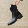Hnědé měkké kožené kovbojské boty s hrubým podpatkem Dámské 2025 Podzim a zima Nové středně vysoké kozačky Módní kozačky s fleecem