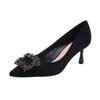 High heels women's 2025 new spring and autumn rhinestones French shallow soft leather pointed thin heels single shoes black with dress