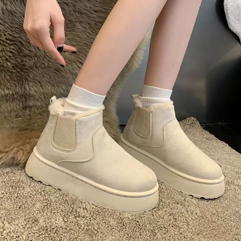 thick-soled white milk huhu snow boots women's 2025 autumn and winter new leather waterproof bread shoes piled thickened cotton shoes