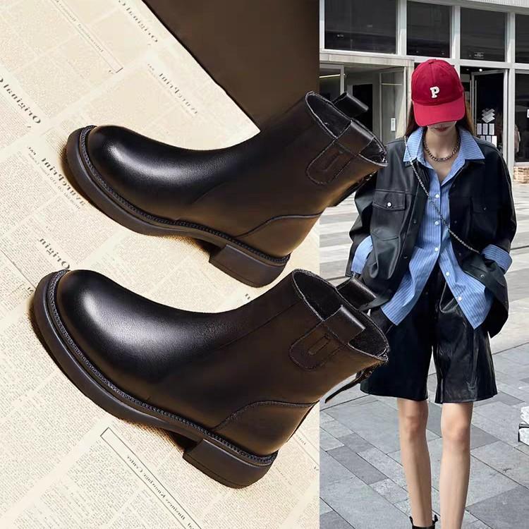 Měkké kožené tenké kozačky dámské 2025 nové s plochou podrážkou se zadním zipem jarní a podzimní jednovrstvé kozačky podzimní a zimní sametové martensky krátké kozačky