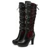 Vysoce kvalitní punkové platformové boty pro ženy Fad šněrovací robustní vysoký podpatek boty do poloviny lýtka mašle gotické dámské boty Botas Mujer