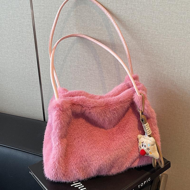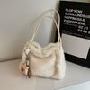 Pleated plush handbag women's 2025 new simple high-value fashionable underarm shoulder bag foreign style small square bag