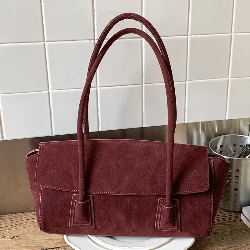 2025 new fashion tote suede retro shoulder underarm commuter bag women's lazy large-capacity handbag