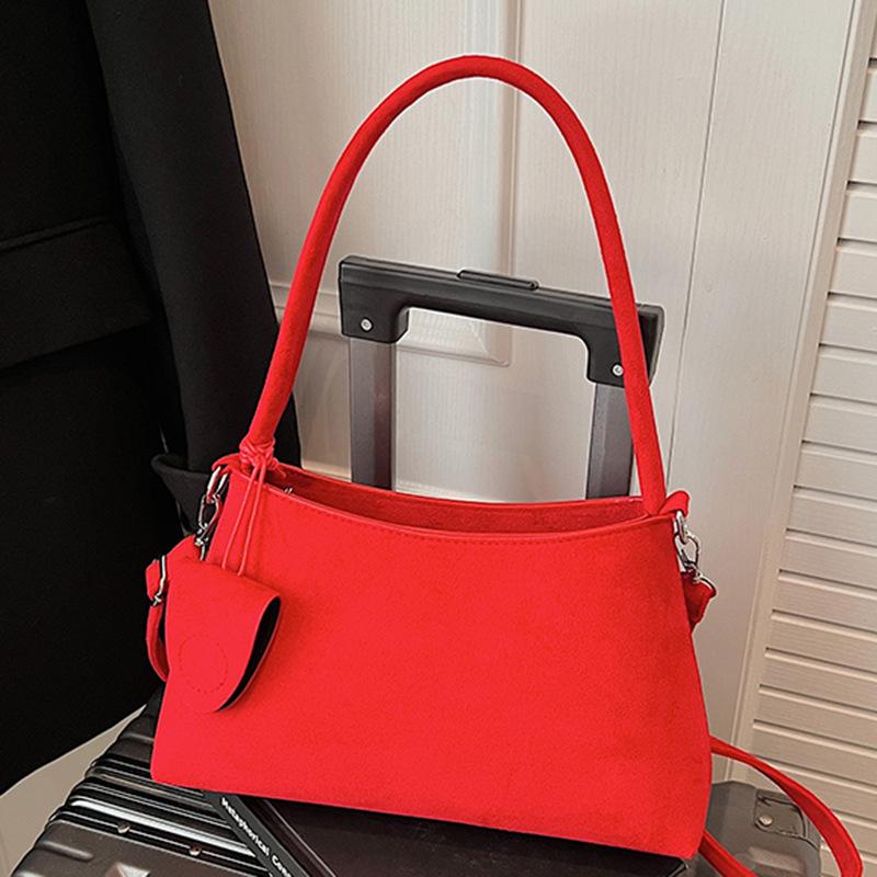 Summer simple solid color musk skin velvet niche underarm bag women's high value foreign style casual handbag commuter shoulder bag
