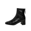 Autumn and winter new soft leather French square head thin boots women's versatile Korean thick high heel bare boots Martin boots retro short boots