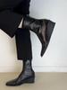 Verze z hovězí kůže~ Britský styl čtvercová špička kožené elastické tenké kozačky dámské klínový podpatek výška podpatku zvyšující měkká kůže černé zadní zip krátké kozačky