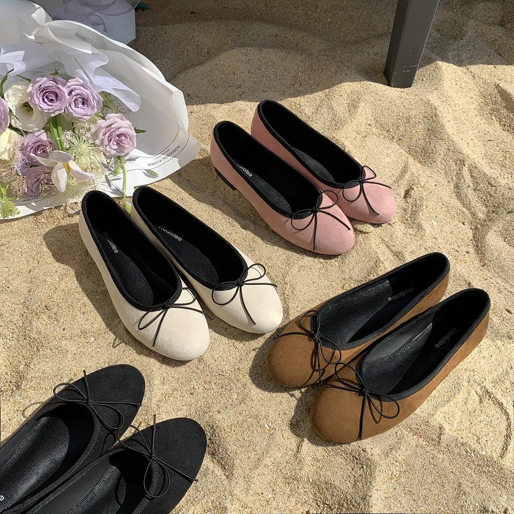Leather version of grape mother, the same commuter shoes, round head bow, light mouth ballet style single shoes, women's ballet flats