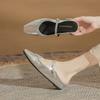 Cowhide version~ inner height increase 3CM pointed head silver rhinestone bag head half slippers women's shoes outer wear 2025 spring and summer metho