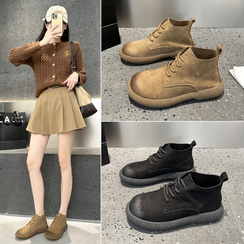 Leather retro short boots children autumn and winter 2025 new flat spring and autumn single boots casual small ankle boots Chelsea boots
