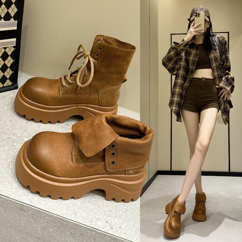 Inner heightening first-layer cowhide Martin boots women's 2025 new British style brown popular thick-soled retro locomotive boots
