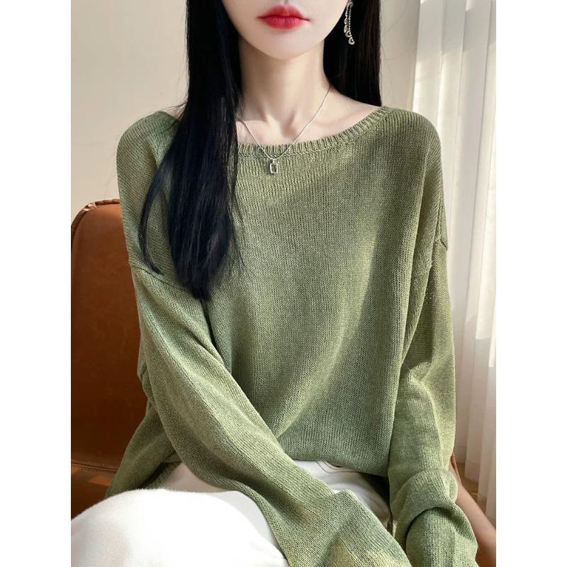 Jednobarevný Podzim Zima Střední délka Volný Ležérní Všestranný S dlouhým rukávem Podkladový Pletený Svetr Dámský Top