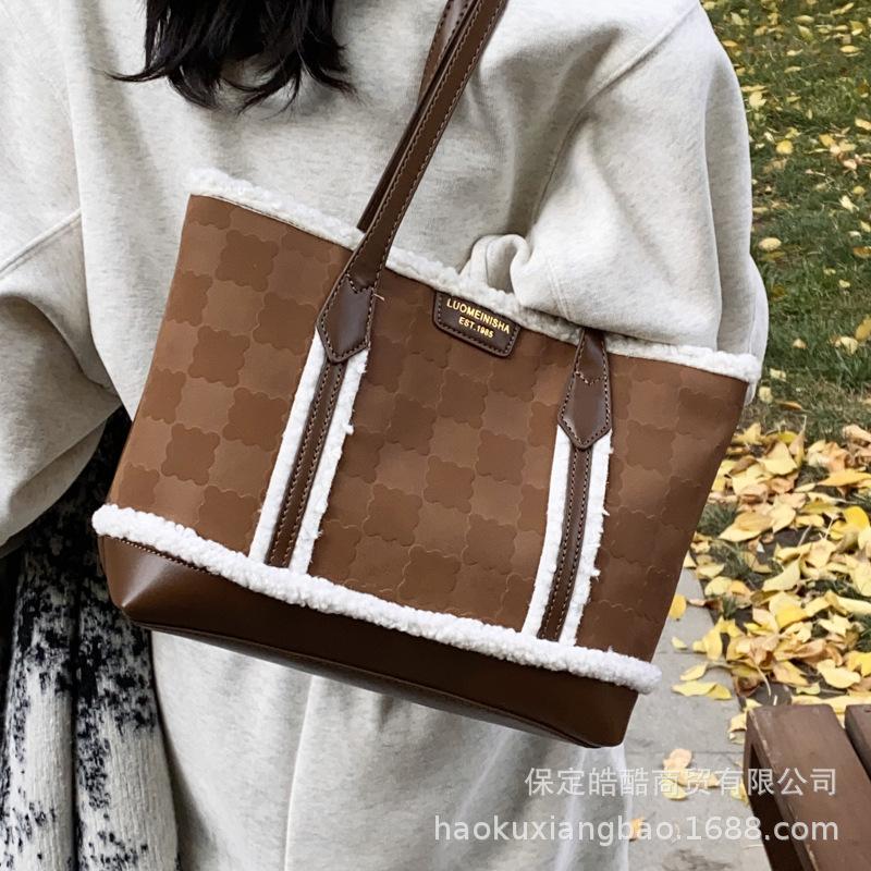 Autumn and winter plush bag commuter tote bag women's 2025 new fashion popular shoulder bag large capacity hand bag